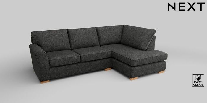 6.12.1 Buy Michigan II Medium Corner Chaise - Right Hand Boucle Weave Easy Clean Charcoal Grey Slim Block - Light from the Next UK online shop Click here to use our accessible website
