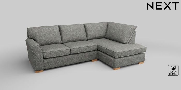6.12.1 Buy Michigan II Medium Corner Chaise - Right Hand Chunky Boucle Easy Clean Mid Grey Slim Block - Light from the Next UK online shop Click here to use our accessible website