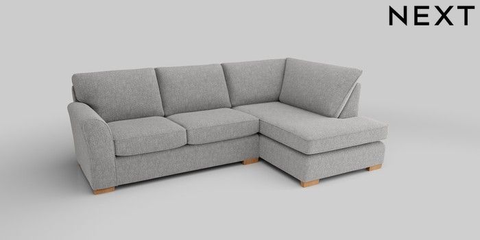 7.2.5 Buy Michigan II Medium Corner Chaise - Right Hand Chunky Chenille Light Grey Slim Block - Light from the Next UK online shop Click here to use our accessible website