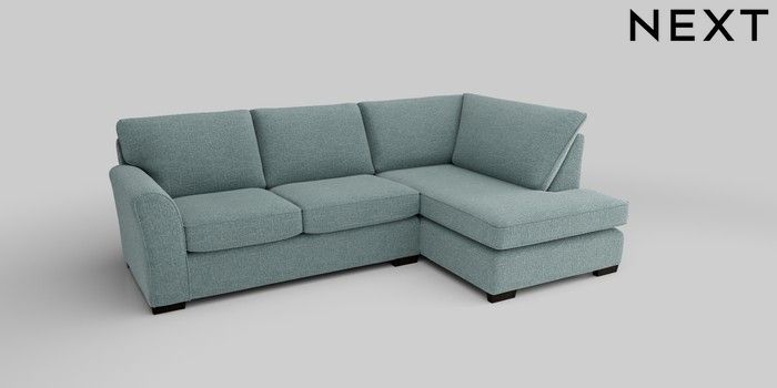 6.12.1 Buy Michigan II Medium Corner Chaise - Right Hand Chunky Chenille Light Teal Green Slim Block - Dark from the Next UK online shop Click here to use our accessible website