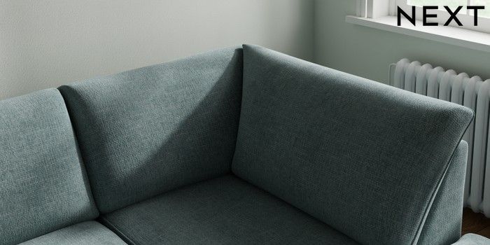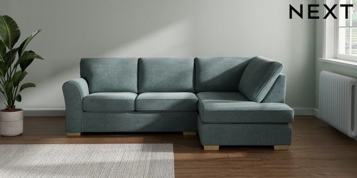 7.3.1 Buy Michigan II Medium Corner Chaise - Right Hand Chunky Chenille Light Teal Green Slim Block - Light from the Next UK online shop