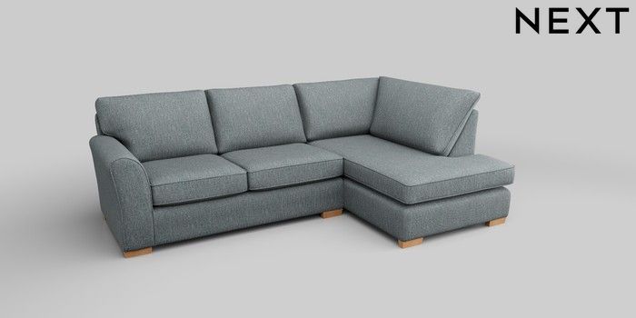 6.12.1 Buy Michigan II Medium Corner Chaise - Right Hand Chunky Weave Mid Blue Slim Block - Light from the Next UK online shop Click here to use our accessible website