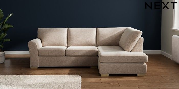 7.3.8 Buy Michigan II Medium Corner Chaise - Right Hand Cotswold Chenille Light Natural Slim Block - Light from the Next UK online shop