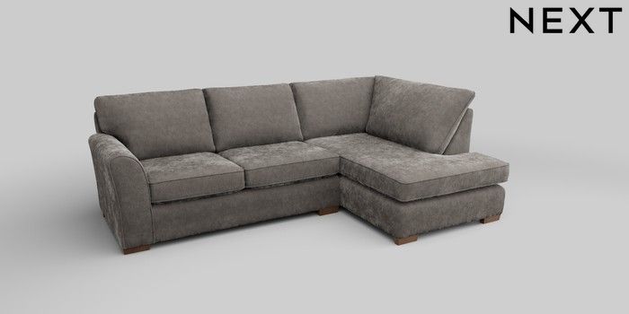 6.12.1 Buy Michigan II Medium Corner Chaise - Right Hand Distressed Velour French Grey Slim Block - Mid from the Next UK online shop Click here to use our accessible website
