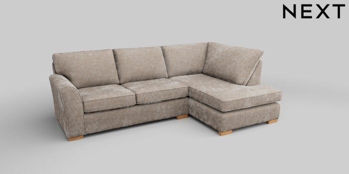 6.12.1 Buy Michigan II Medium Corner Chaise - Right Hand Distressed Velour Mid Natural Slim Block - Light from the Next UK online shop Click here to use our accessible website