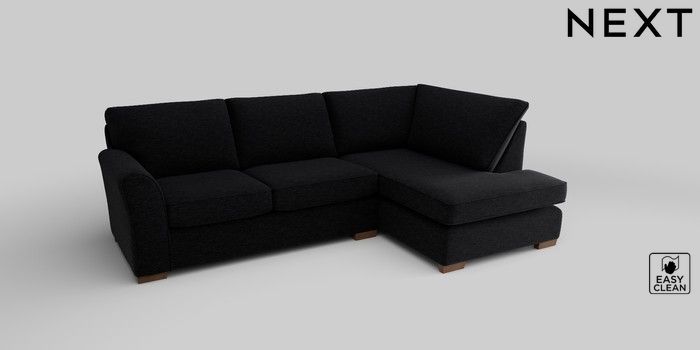 6.12.1 Buy Michigan II Medium Corner Chaise - Right Hand Fine Chenille Easy Clean Black Slim Block - Mid from the Next UK online shop Click here to use our accessible website