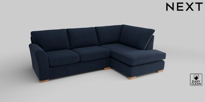 6.12.1 Buy Michigan II Medium Corner Chaise - Right Hand Fine Chenille Easy Clean Dark Navy Blue Slim Block - Light from the Next UK online shop Click here to use our accessible website