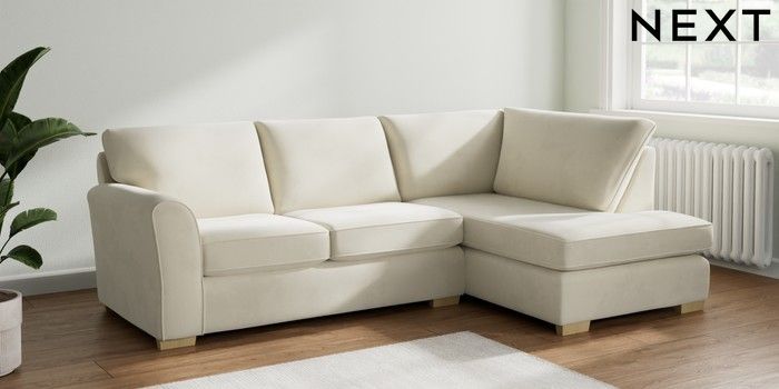 7.0.3 Buy Michigan II Medium Corner Chaise - Right Hand Luxe Chenille Oyster Slim Block - Light from the Next UK online shop Click here to use our accessible website
