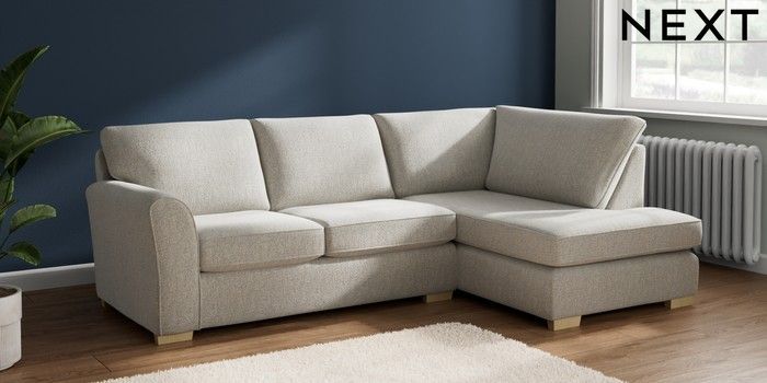 7.2.6 Buy Michigan II Medium Corner Chaise - Right Hand Multi Weave Light Blue Slim Block - Light from the Next UK online shop Click here to use our accessible website