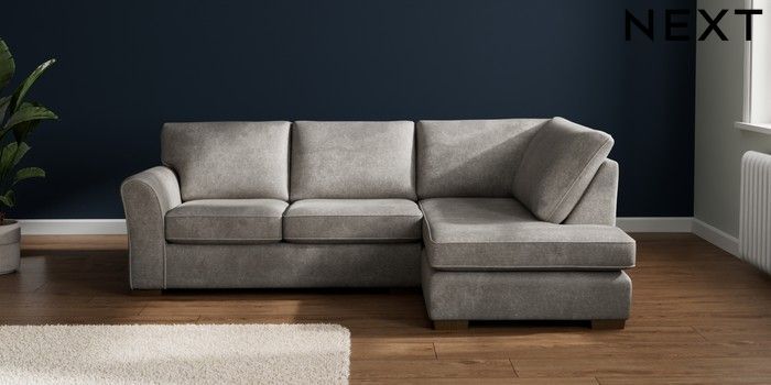 7.3.1 Buy Michigan II Medium Corner Chaise - Right Hand Plush Chenille Light Grey Slim Block - Mid from the Next UK online shop