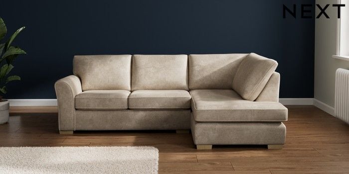7.3.1 Buy Michigan II Medium Corner Chaise - Right Hand Plush Chenille Light Natural Slim Block - Light from the Next UK online shop