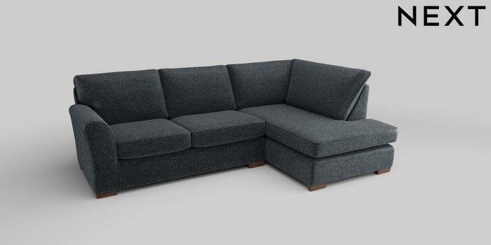 6.12.1 Buy Michigan II Medium Corner Chaise - Right Hand Plush Chenille Slate Blue Slim Block - Mid from the Next UK online shop Click here to use our accessible website