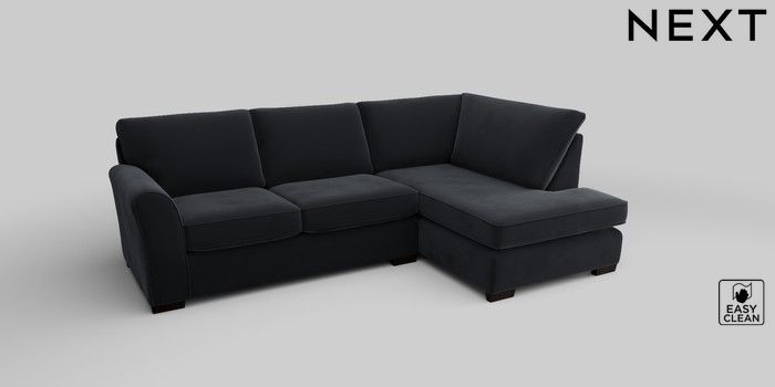 6.12.1 Buy Michigan II Medium Corner Chaise - Right Hand Plush Velvet Easy Clean Charcoal Grey Slim Block - Dark from the Next UK online shop Click here to use our accessible website