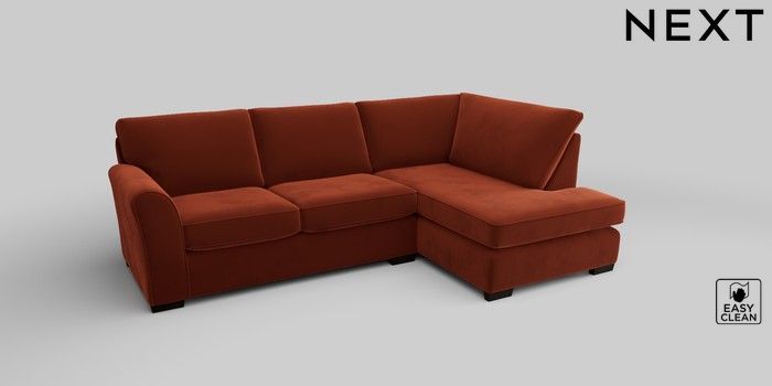 6.12.1 Buy Michigan II Medium Corner Chaise - Right Hand Plush Velvet Easy Clean Ginger Orange Slim Block - Dark from the Next UK online shop Click here to use our accessible website