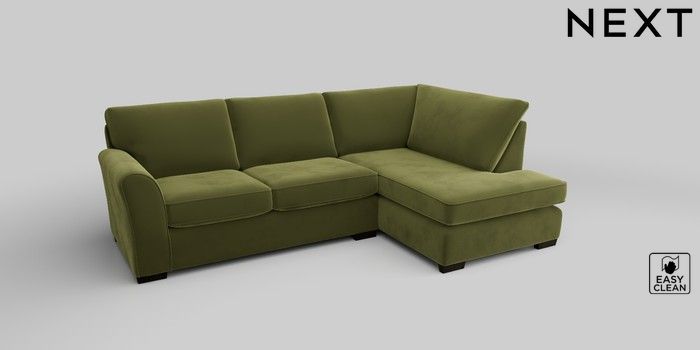 6.12.1 Buy Michigan II Medium Corner Chaise - Right Hand Plush Velvet Easy Clean Mid Olive Green Slim Block - Dark from the Next UK online shop Click here to use our accessible website