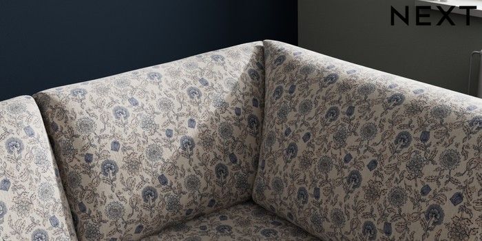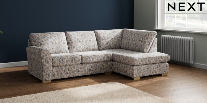 7.3.1 Buy Michigan II Medium Corner Chaise - Right Hand Relaxed Linen Look Print Woodblock Floral Blue Slim Block - Light from the Next UK online shop Click here to use our accessible website