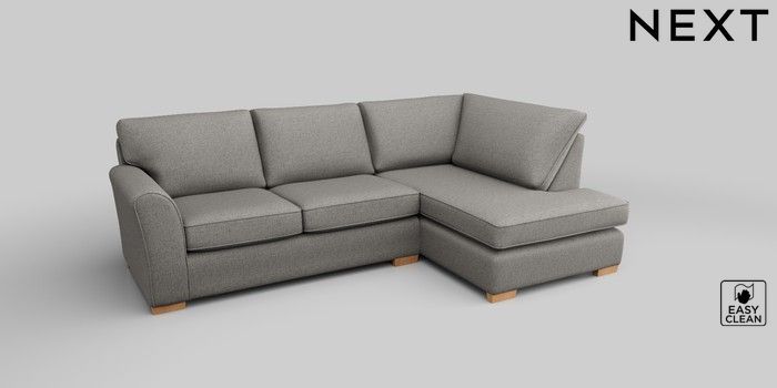 6.12.1 Buy Michigan II Medium Corner Chaise - Right Hand Woven Chenille Easy Clean Light Grey Slim Block - Light from the Next UK online shop Click here to use our accessible website