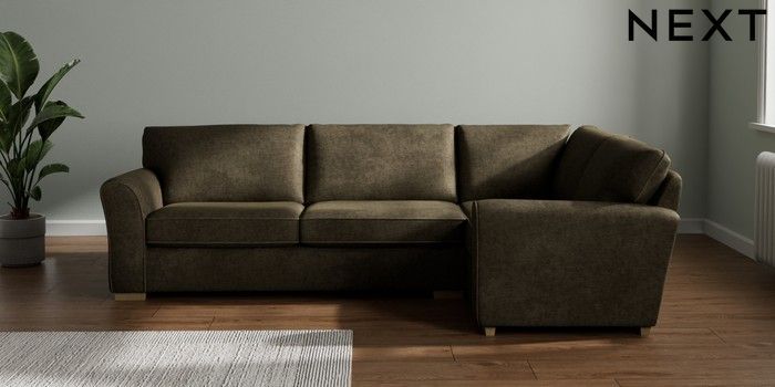 7.3.8 Buy Michigan II Large Corner Sofa - Right Hand Plush Chenille Moss Green Slim Block - Light from the Next UK online shop