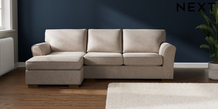 7.3.1 Buy Michigan II Medium Sofa Chaise - Left Hand Boucle Chenille Light Natural Slim Block - Mid from the Next UK online shop