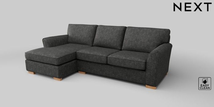 6.12.1 Buy Michigan II Medium Sofa Chaise - Left Hand Boucle Weave Easy Clean Charcoal Grey Slim Block - Light from the Next UK online shop Click here to use our accessible website