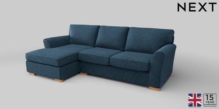 6.12.1 Buy Michigan II Medium Sofa Chaise - Left Hand Cotswold Chenille Dark Blue Slim Block - Light from the Next UK online shop Click here to use our accessible website