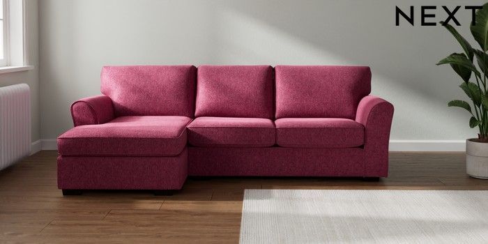 7.3.1 Buy Michigan II Medium Sofa Chaise - Left Hand Cotswold Chenille Dark Raspberry Pink Slim Block - Dark from the Next UK online shop