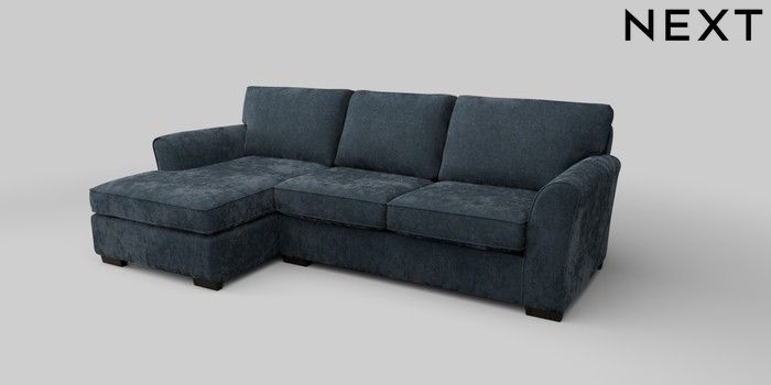 6.12.1 Buy Michigan II Medium Sofa Chaise - Left Hand Distressed Velour Midnight Blue Slim Block - Dark from the Next UK online shop Click here to use our accessible website