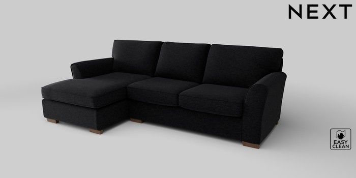 6.12.1 Buy Michigan II Medium Sofa Chaise - Left Hand Fine Chenille Easy Clean Black Slim Block - Mid from the Next UK online shop Click here to use our accessible website