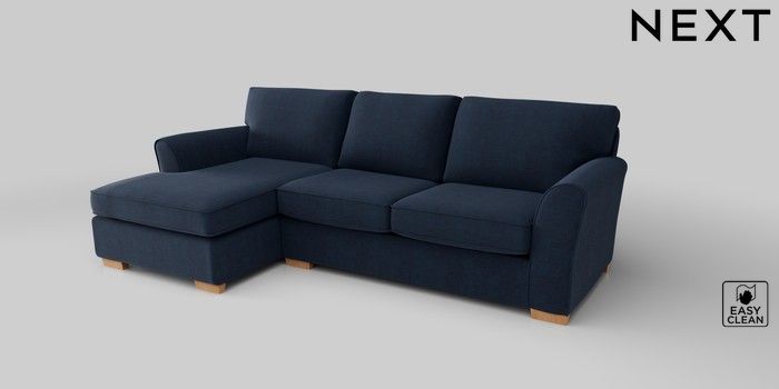 6.12.1 Buy Michigan II Medium Sofa Chaise - Left Hand Fine Chenille Easy Clean Dark Navy Blue Slim Block - Light from the Next UK online shop Click here to use our accessible website