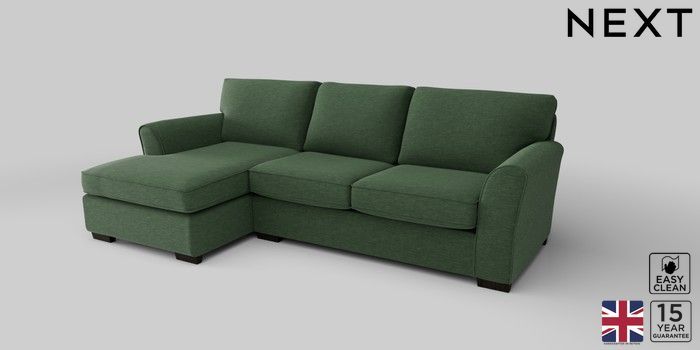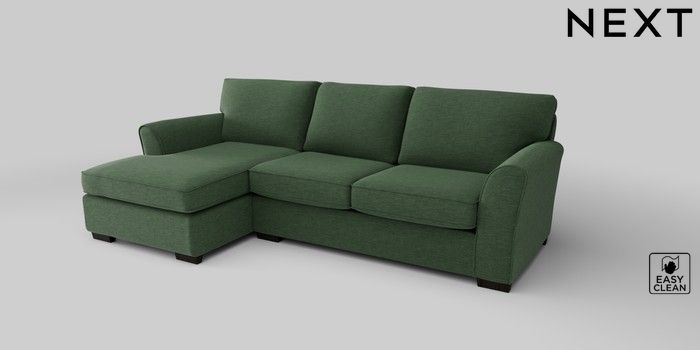 6.12.1 Buy Michigan II Medium Sofa Chaise - Left Hand Fine Chenille Easy Clean Mid Khaki Green Slim Block - Dark from the Next UK online shop Click here to use our accessible website