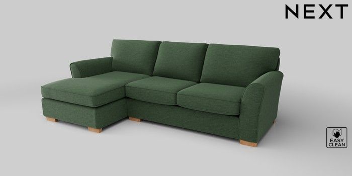6.12.1 Buy Michigan II Medium Sofa Chaise - Left Hand Fine Chenille Easy Clean Mid Khaki Green Slim Block - Light from the Next UK online shop Click here to use our accessible website