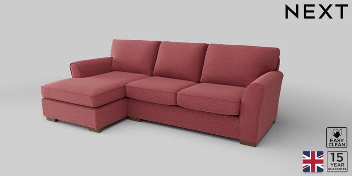 6.12.1 Buy Michigan II Medium Sofa Chaise - Left Hand Fine Chenille Easy Clean Mid Pink Slim Block - Mid from the Next UK online shop Click here to use our accessible website