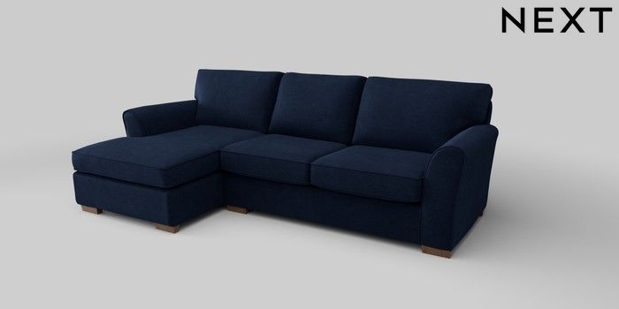 6.12.1 Buy Michigan II Medium Sofa Chaise - Left Hand Luxe Chenille Navy Blue Slim Block - Mid from the Next UK online shop Click here to use our accessible website