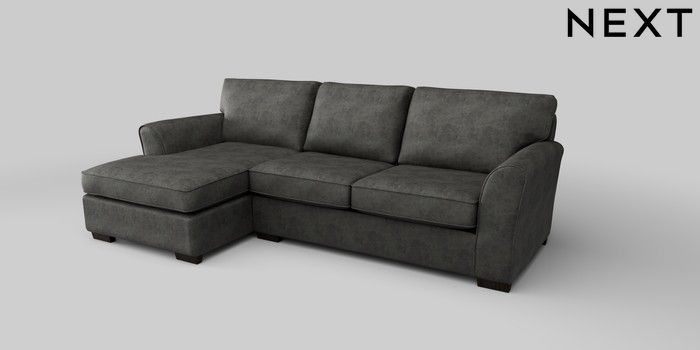 6.12.1 Buy Michigan II Medium Sofa Chaise - Left Hand Monza Faux Leather Easy Clean Dark Grey Slim Block - Dark from the Next UK online shop Click here to use our accessible website