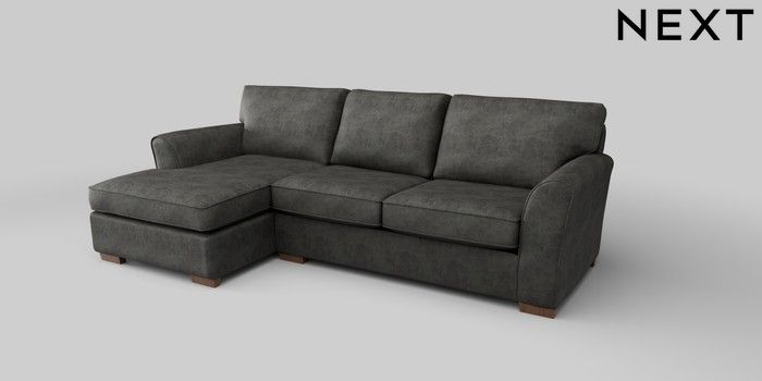 6.12.1 Buy Michigan II Medium Sofa Chaise - Left Hand Monza Faux Leather Easy Clean Dark Grey Slim Block - Mid from the Next UK online shop Click here to use our accessible website