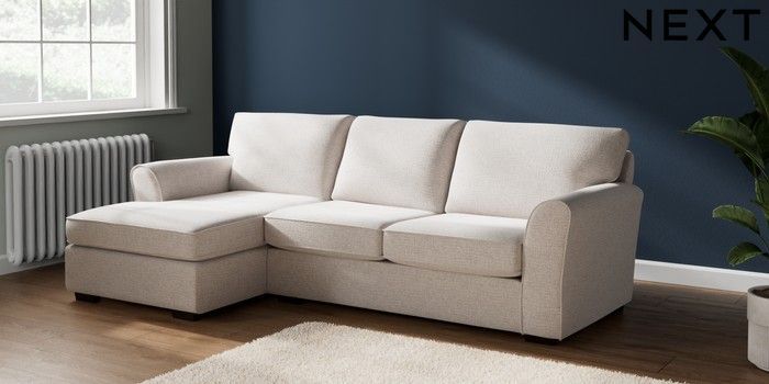 7.2.6 Buy Michigan II Medium Sofa Chaise - Left Hand Multi Weave Oyster Slim Block - Dark from the Next UK online shop Click here to use our accessible website