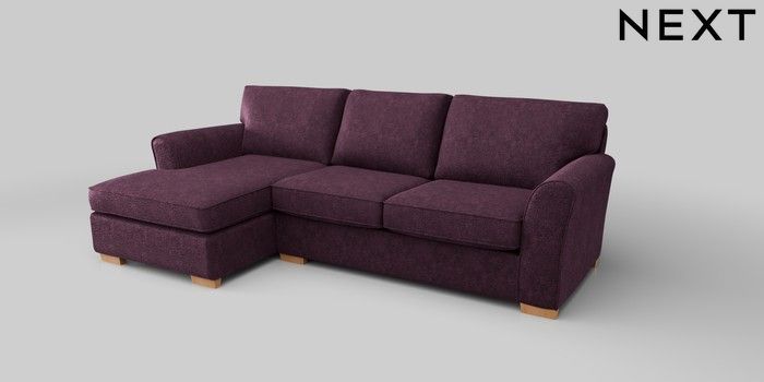 6.12.1 Buy Michigan II Medium Sofa Chaise - Left Hand Plush Chenille Dark Plum Purple Slim Block - Light from the Next UK online shop Click here to use our accessible website