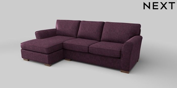 6.12.1 Buy Michigan II Medium Sofa Chaise - Left Hand Plush Chenille Dark Plum Purple Slim Block - Mid from the Next UK online shop Click here to use our accessible website
