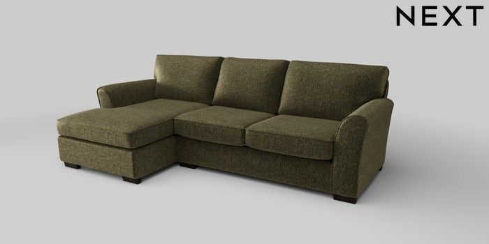 6.12.1 Buy Michigan II Medium Sofa Chaise - Left Hand Plush Chenille Moss Green Slim Block - Dark from the Next UK online shop Click here to use our accessible website
