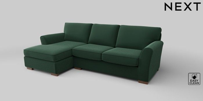 6.12.1 Buy Michigan II Medium Sofa Chaise - Left Hand Plush Velvet Easy Clean Bottle Green Slim Block - Mid from the Next UK online shop Click here to use our accessible website