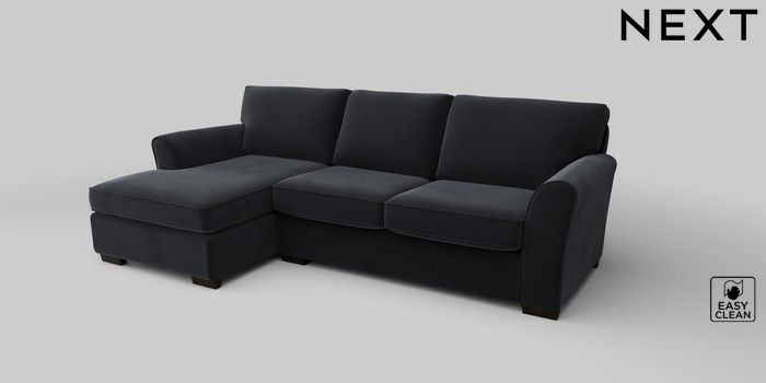 6.12.1 Buy Michigan II Medium Sofa Chaise - Left Hand Plush Velvet Easy Clean Charcoal Grey Slim Block - Dark from the Next UK online shop Click here to use our accessible website