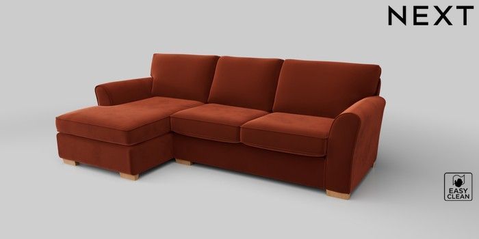 6.12.1 Buy Michigan II Medium Sofa Chaise - Left Hand Plush Velvet Easy Clean Ginger Orange Slim Block - Light from the Next UK online shop Click here to use our accessible website
