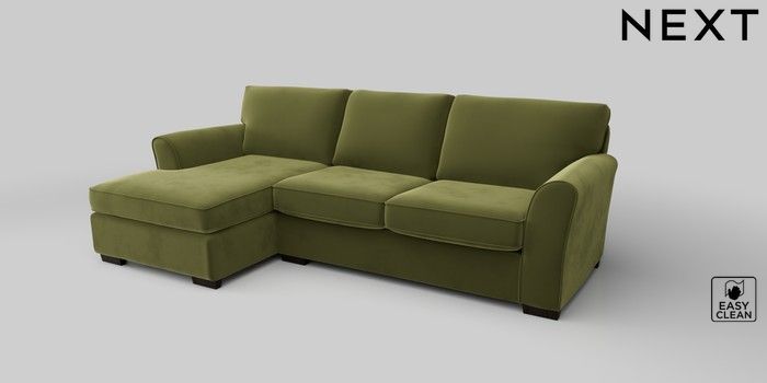 6.12.1 Buy Michigan II Medium Sofa Chaise - Left Hand Plush Velvet Easy Clean Mid Olive Green Slim Block - Dark from the Next UK online shop Click here to use our accessible website