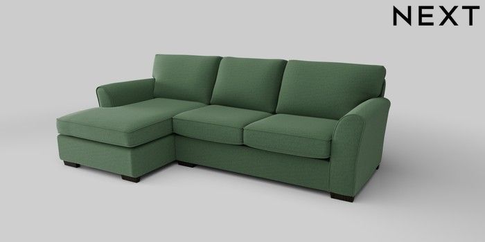6.12.1 Buy Michigan II Medium Sofa Chaise - Left Hand Relaxed Linen Look Dark Green Slim Block - Dark from the Next UK online shop Click here to use our accessible website