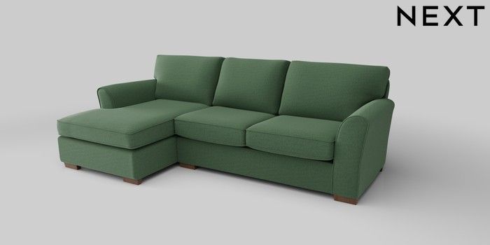 6.12.1 Buy Michigan II Medium Sofa Chaise - Left Hand Relaxed Linen Look Dark Green Slim Block - Mid from the Next UK online shop Click here to use our accessible website