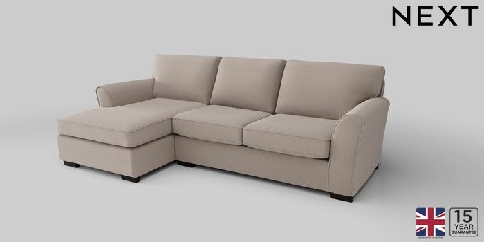 6.12.1 Buy Michigan II Medium Sofa Chaise - Left Hand Relaxed Linen Look Mid Natural Slim Block - Dark from the Next UK online shop Click here to use our accessible website