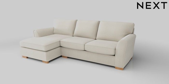 6.12.1 Buy Michigan II Medium Sofa Chaise - Left Hand Relaxed Linen Look Oyster Slim Block - Light from the Next UK online shop Click here to use our accessible website