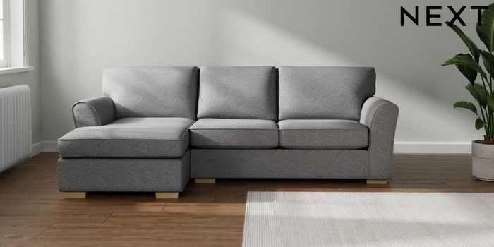 7.3.1 Buy Michigan II Medium Sofa Chaise - Left Hand Studio Chenille Mid Grey Slim Block - Light from the Next UK online shop