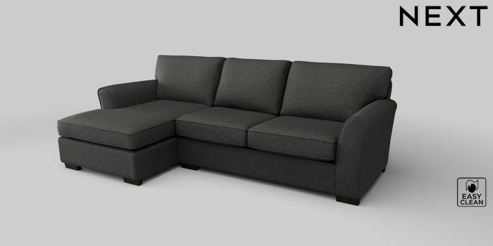 6.12.1 Buy Michigan II Medium Sofa Chaise - Left Hand Tweedy Blend Easy Clean Charcoal Grey Slim Block - Dark from the Next UK online shop Click here to use our accessible website
