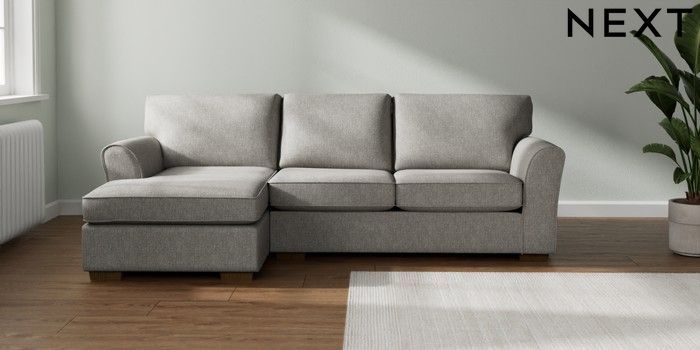 7.3.1 Buy Michigan II Medium Sofa Chaise - Left Hand Tweedy Chenille Mid Grey Slim Block - Mid from the Next UK online shop